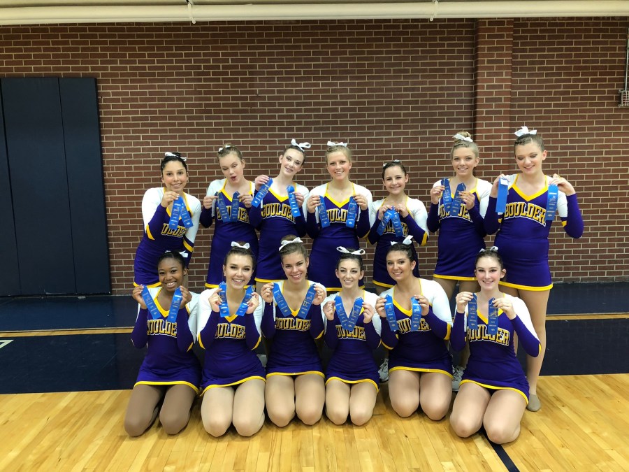 The Boulder High POMS team showed their skill and versatility at the UDA Technique at Regis College at the end of June, where EVERY member of the team earned two “blue ribbons” for their efforts in POMS, Jazz and Hip Hop. They were also signaled out for the team with the best spirit at the camp. Brilliantly done girls!
